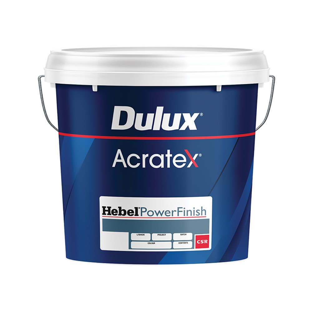 Dulux Acratex® Hebel® Powerfinish® is a mid-build, trowel applied flexible acrylic finishing and barrier texture coat that provides the decorative final layer delivering a medium Tuscan-style finish whilst maintaining barrier performance through its unique water phobic technology.