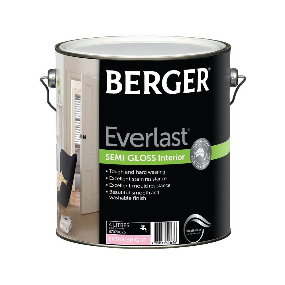 Berger Everlast creates a beautiful and washable finish that is built to last in your home. With a very low VOC level and low odour formulation, Berger Everlast is Breathe Easy® allowing you to move back into your home sooner. Its smooth finish is tough, hard wearing and designed to last.