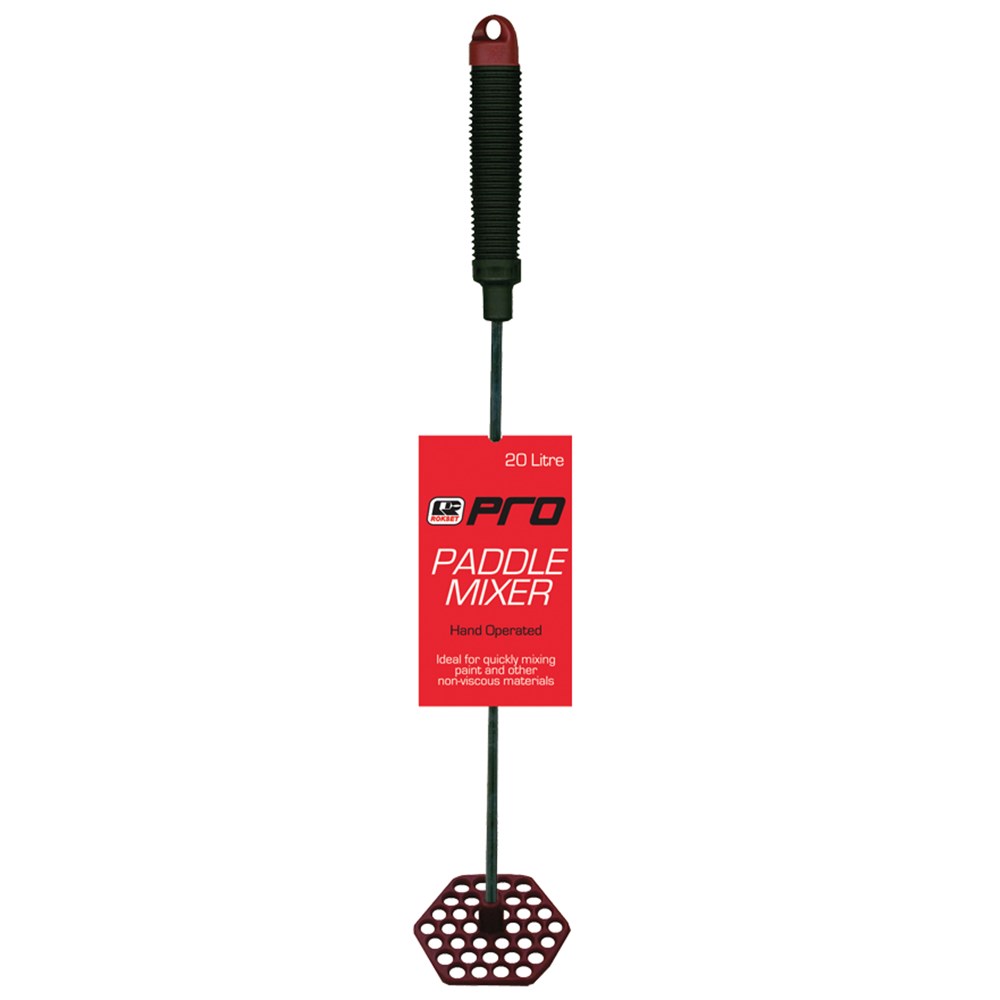 Pro Paddle Mixer 20 litre. Premium trade quality, plated steel shafts and tough nylon paddles. Hand operated on the plunger principle. Ideal for quickly mixing paint and other non-viscous materials.