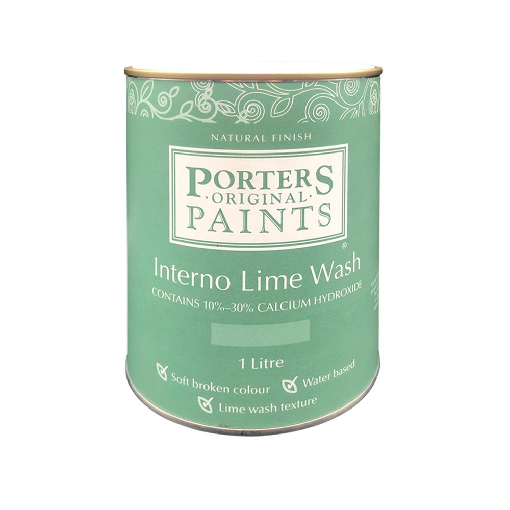 Porter’s Interno Lime Wash is a unique lime based coating which is designed for interior use, and replicates the soft weathered patina of a traditional lime wash. Its unique formulation allows the lime to gently “bloom” through the paint, creating soft tone variations which add depth, texture and that Mediterranean look without the necessity of exposure to the elements. If required, can be over-coated with Matt Wall Sealer for extra protection, and to create a wipeable finish.
