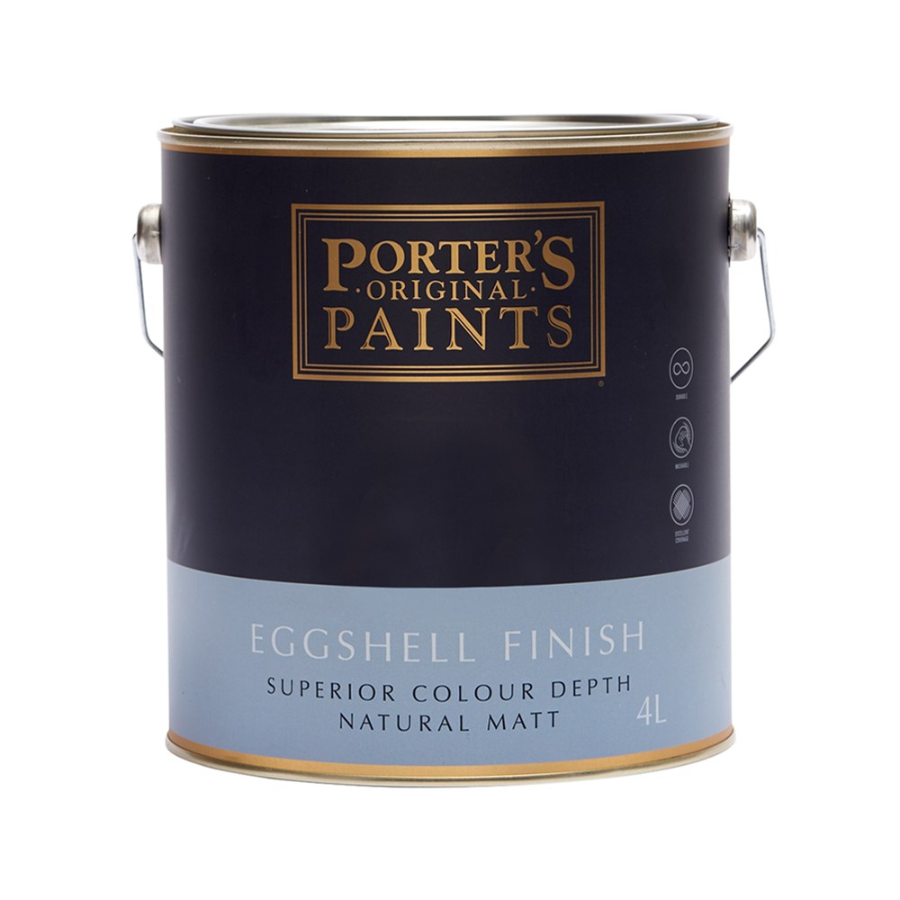 Porter's Eggshell Acrylic is a premium quality acrylic paint that gives walls and other surfaces a low reflective finish with a subtle, natural lustre. This elegant finish is fully washable and resists scratches, knocks and stains. For walls where a very subtle sheen level is required. A matt finish that softens reflected light and glare. Gives European subtlety for an elegant finish.