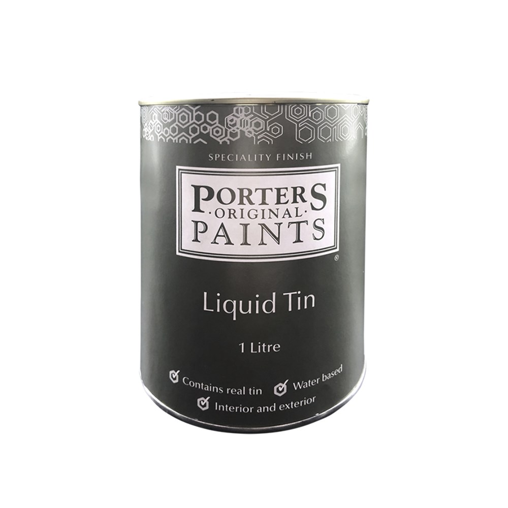 Porter’s Liquid Tin replicates hard to come by architectural tin, and is perfect for creating a handmade or vintage tin finish on broad wall areas, door lintels, architectural features and garden ornaments.