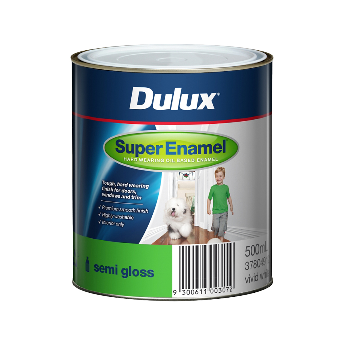 Dulux Super Enamel Semi Gloss is a high quality, hard wearing oil based interior semi gloss enamel for use on walls, doors, architraves and timber trim.
