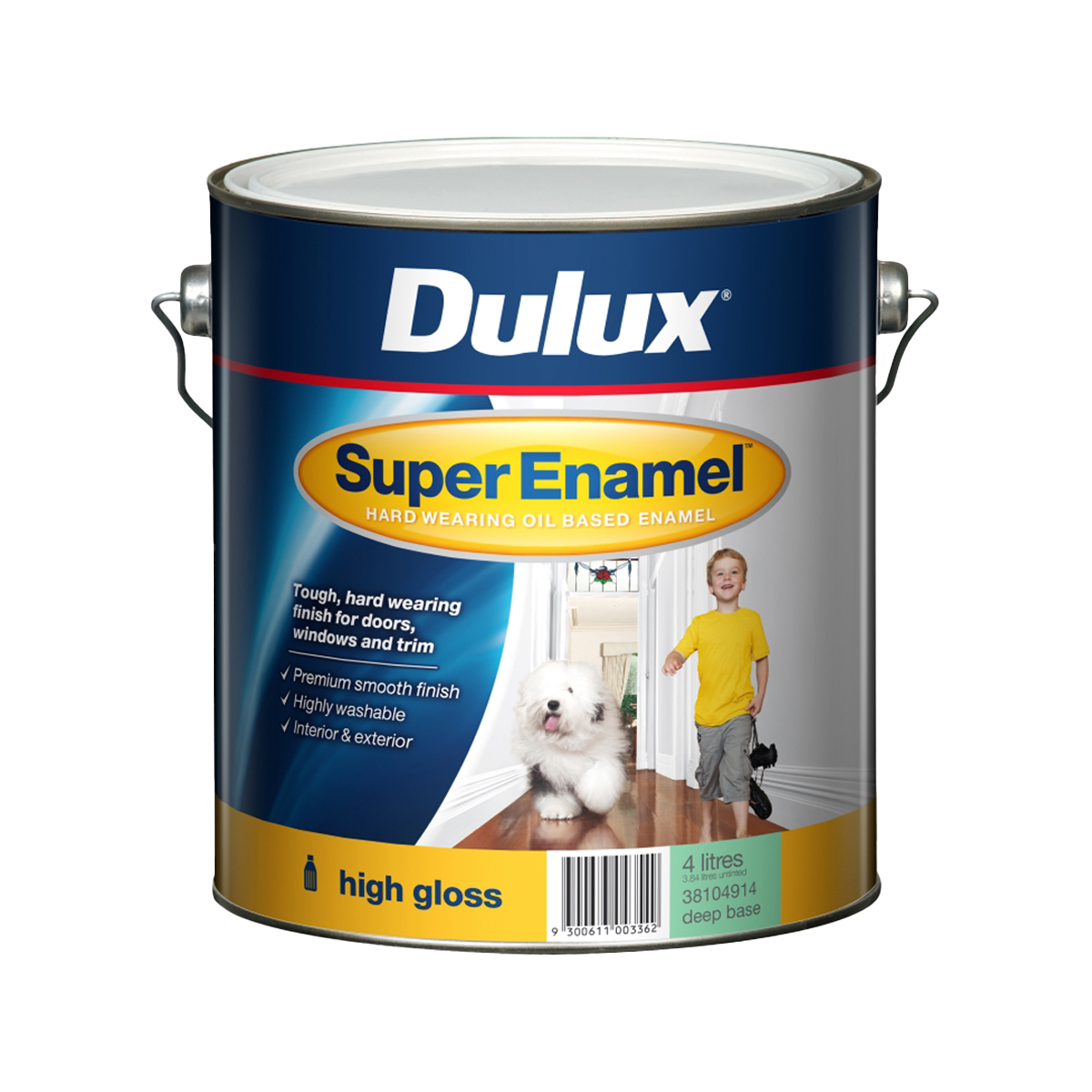 Dulux Super Enamel High Gloss is a high quality, hard wearing oil based interior gloss enamel for use on walls, doors, architraves and timber trim.