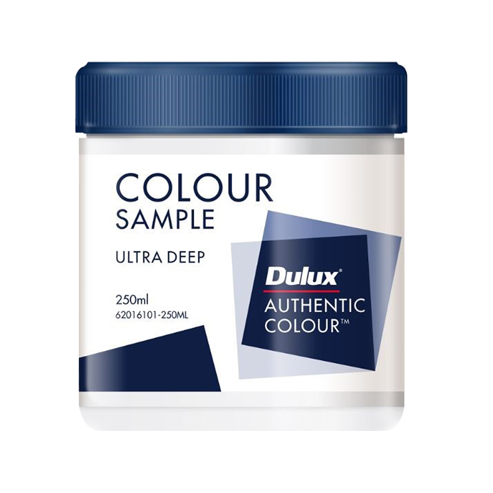 Dulux sample pot in white or coloured base. Low sheen finish. Water wash up.