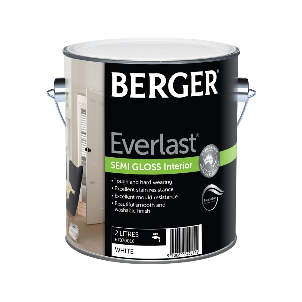 Berger Everlast creates a beautiful and washable finish that is built to last in your home. With a low VOC and low odour formulation, Berger Everlast is Breathe Easy® allowing you to move back into your home sooner. Its smooth finish is tough, hard wearing and designed to last.