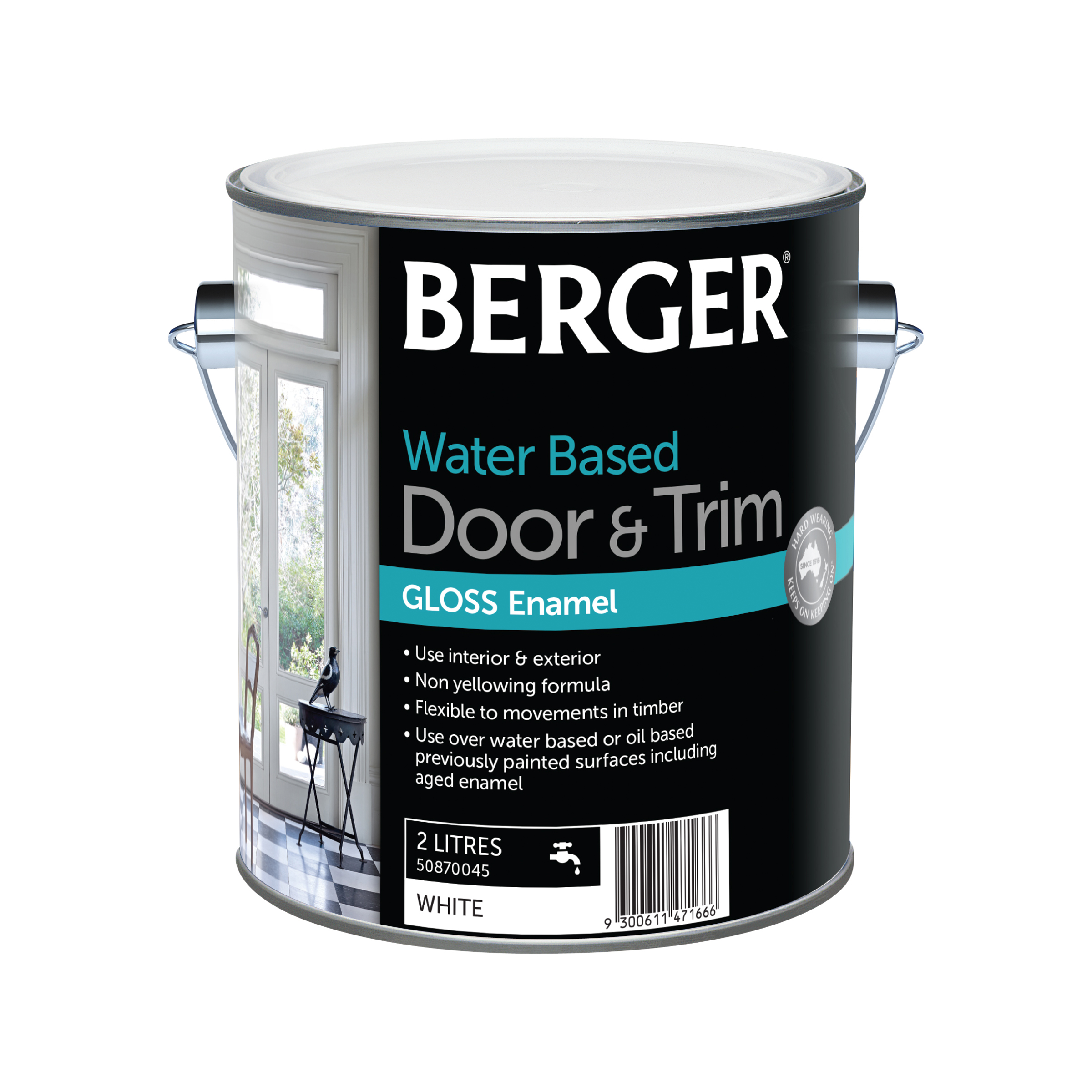 Berger Door & Trim Water Based creates a beautiful and hard wearing gloss finish ideal for doors, windows, and trim in your home. Berger Doors & Trim Water Based is non yellowing for better colour retention, and is flexible to movements in timber. Use Berger Doors & Trim in high traffic areas of your home.