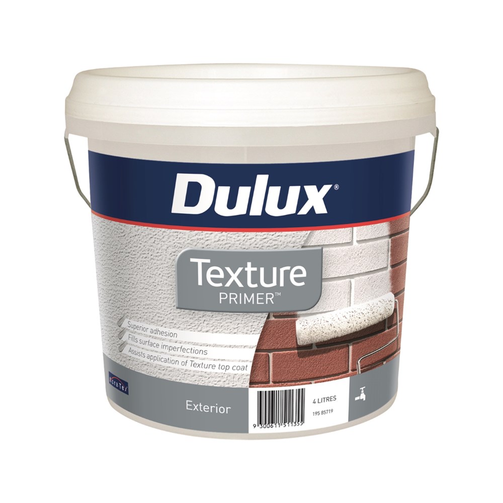 Dulux Texture primer is a high build primer and sealer for use on porous masonry. Use under Dulux Texture Fine Cover, Dulux Texture Medium Cover and Dulux Texture Full Cover Roll On.