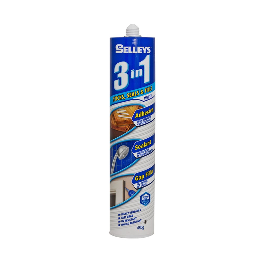 Selleys 3 in 1 Adhesive, Sealant & Gap Filler White 480g