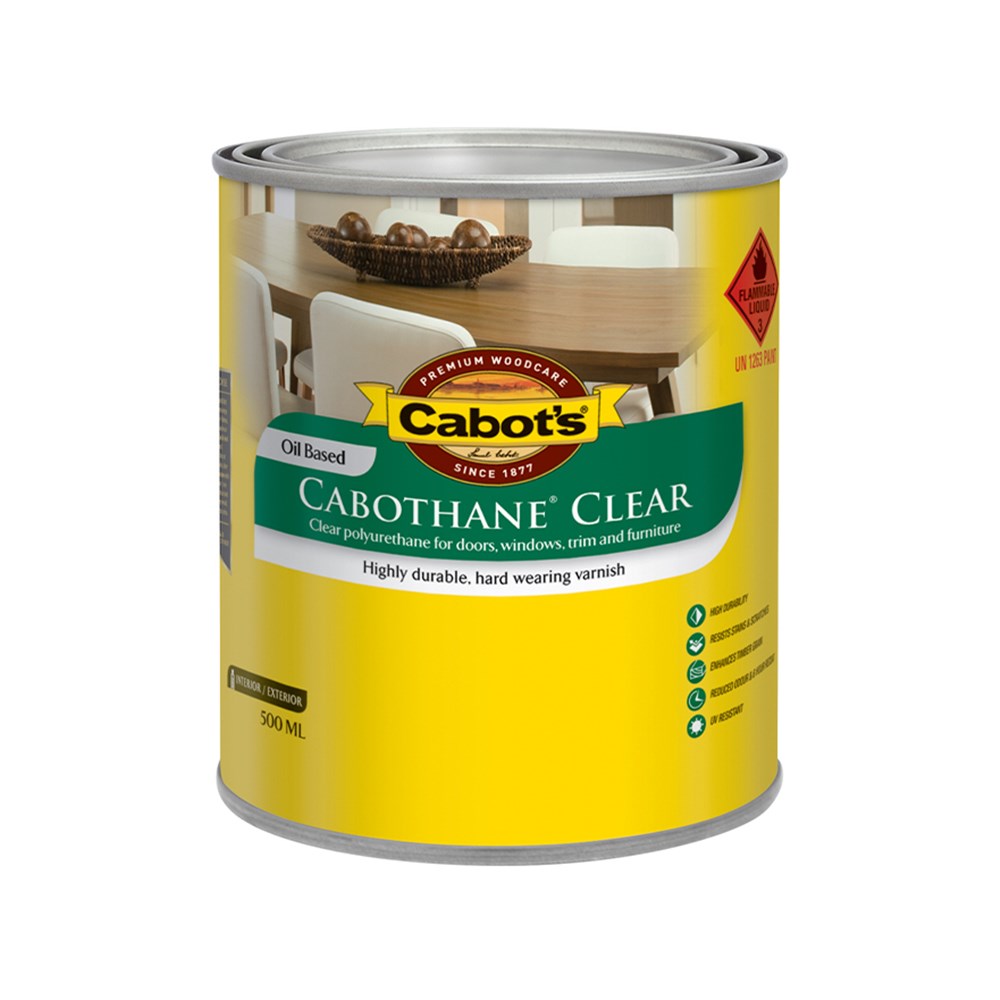 Cabot's Cabothane Clear Oil Based is a clear polyurethane for doors, windows, trim and furniture. It is a durable, hard wearing varnish that enhances timber grain.