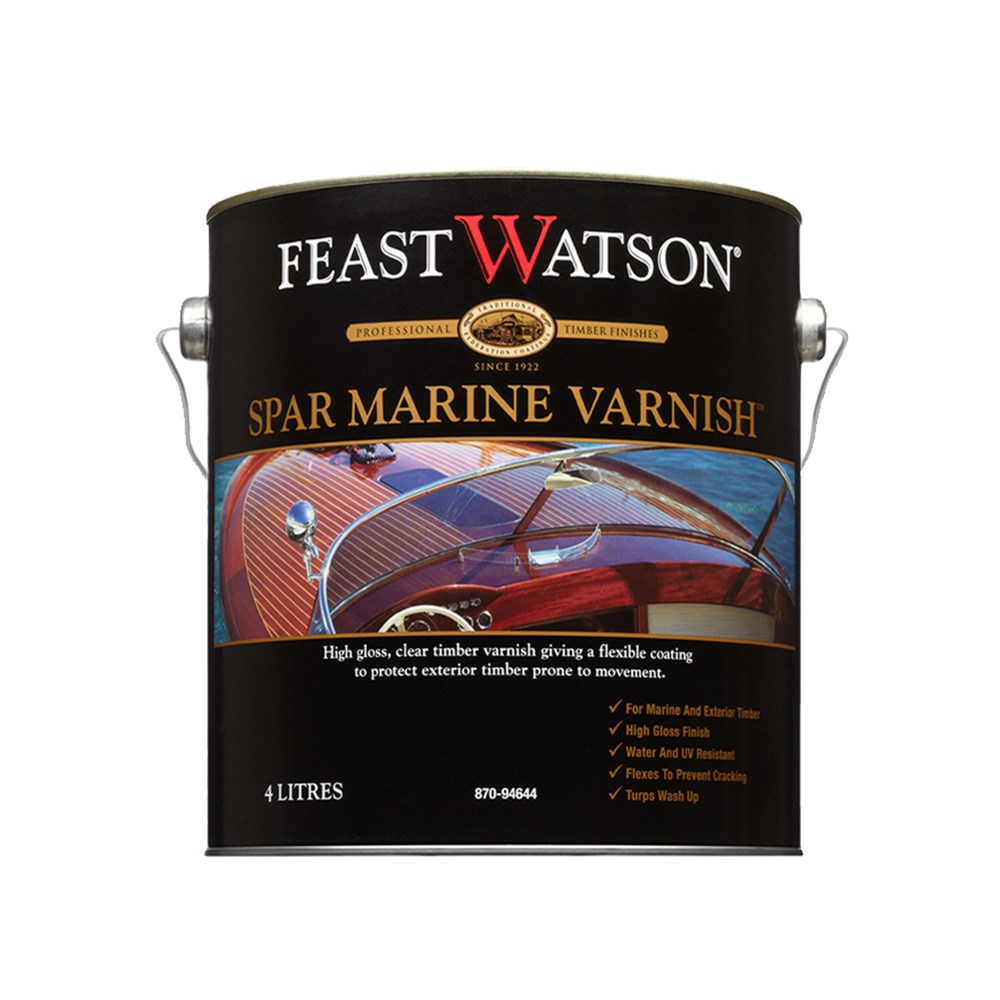 A high gloss exterior varnish that is flexible when fully cured, allowing surfaces to bend, twist, expand and contract without the coating cracking or splitting. Spar Marine Varnish is designed to lock out moisture to protect the timber from water damage, making it ideal for above water line marine applications as well as exterior timber. If desired, Spar Marine may be used over Feast Watson Wood shield Oil 7-10 days after staining. Note: Spar Marine Varnish is NOT suitable for below the water line applications.