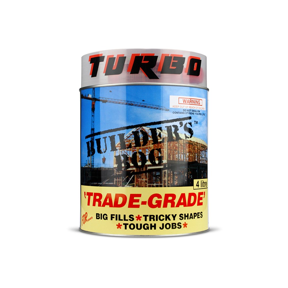 Turbo Builders Bog is a trade quality timber repair filler designed for use by builders and painters but equally popular with DIY enthusiasts – It’s like wood in a can! Turbo Builder’s Bog is a two part polyester filler which is ideal for filling large imperfections in timber, like window sills, doors or where there is rot and it’s difficult to repair.