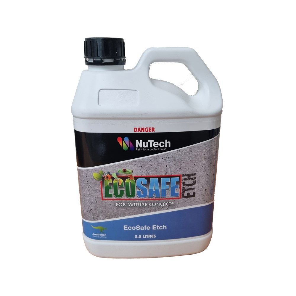 Nu EcoSafe Strip Concrete Etch is a water-based surface prep etching compound specifically designed to provide a surface profile on green and mature concrete. Etching is often a pre-requisite for application of high-performance paint/coating systems. Nu EcoSafe Strip Concrete Etch, has been proven to effectively etch green and mature concrete and masonry. The depth of etching achieved with Nu EcoSafe Strip Concrete Etch is the same as that of hydrochloric or muriatic acid. The residue is easily removed by water rinsing. These products are suitable for treating vertical and horizontal surfaces.