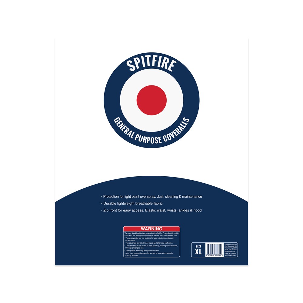 Spitfire General Purpose Coveralls are an important, disposable, safety item. Made to higher specifications than most coveralls on the market, they are constructed from non-woven polypropylene material to be heavier, stronger, and more durable with an elastic wrist, ankle, and hood for better fit and comfort. Available in a range of sizes from Medium to 2XL. These coveralls are not a P1/P2 rated safety garment and not recommended for use with hazardous materials.