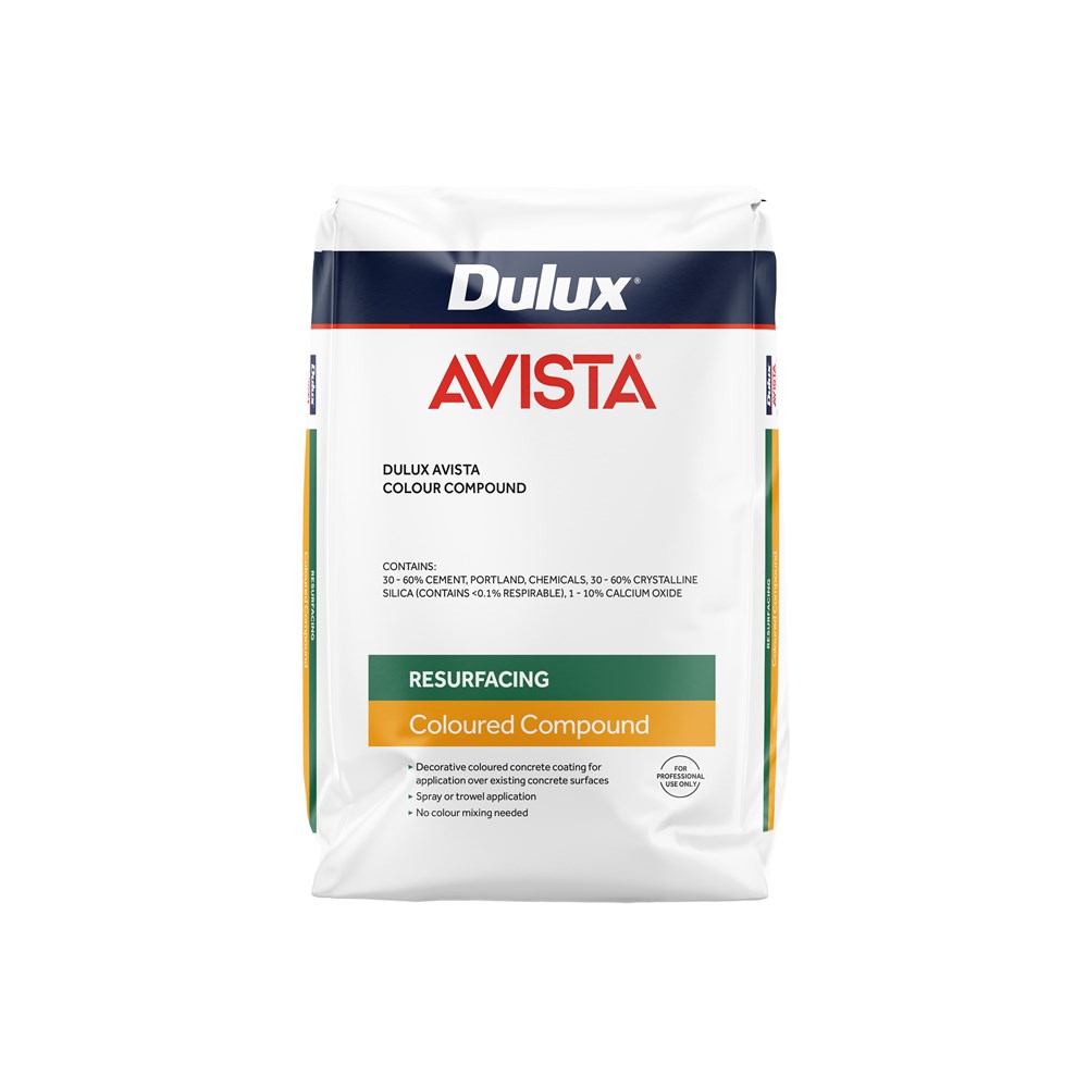 Dulux Avista Resurfacing Coloured Compound is a decorative coloured concrete coating suitable for application over existing cured concrete surfaces. It is a suitable application for driveways, patios, pool surrounds, house and commercial decorative floors and certain road applications.