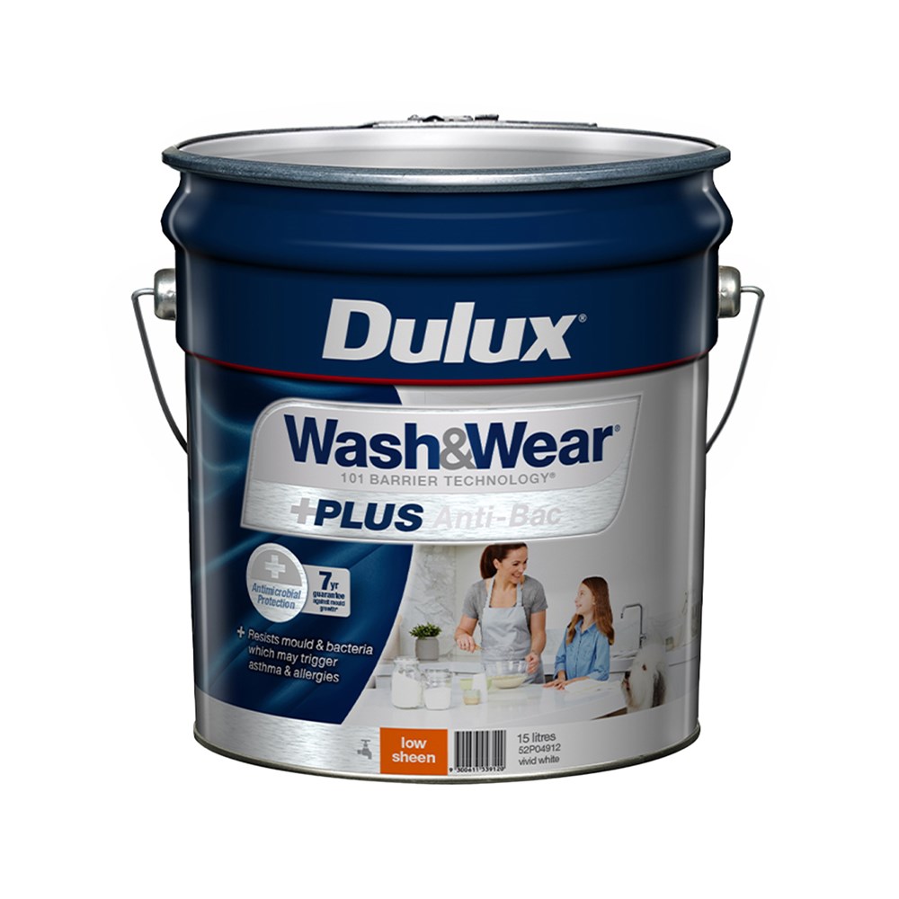 Dulux Wash&Wear +PLUS Anti-Bac Low Sheen Vivid White 15L