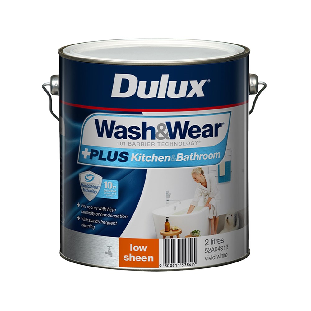 Dulux Wash&Wear +PLUS Kitchen&Bathroom Semi Gloss is made with the hard wearing, stain and mark resistant 101 Barrier Technology, fortified with a powerful mould-inhibitor. This gives exceptional washability and lasting protection to rooms with damp and humid conditions such as kitchens, bathrooms and laundries.