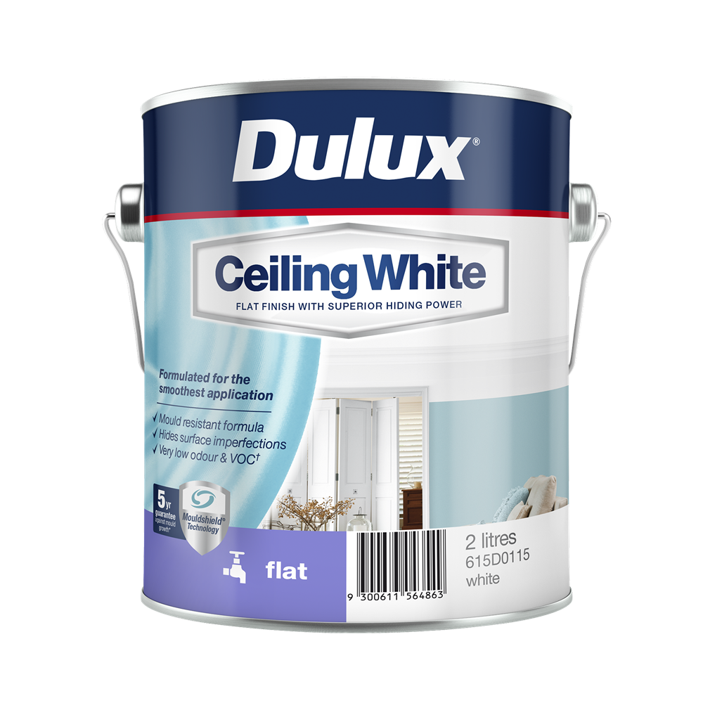 Dulux Ceiling White offers smooth application and a flat finish, making it easier than ever to transform all interior ceilings. With its exceptional coverage and superior hiding power, it effortlessly conceals surface imperfections. Equipped with a 5-year guarantee against mould growth, Dulux Ceiling White is specially formulated to achieve a long-lasting, quality result.