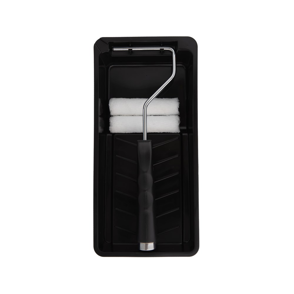 Includes a 170mm heavy duty tray, Short Handle Frame (100mm) and 2 Microfibre Mini Roller Covers.