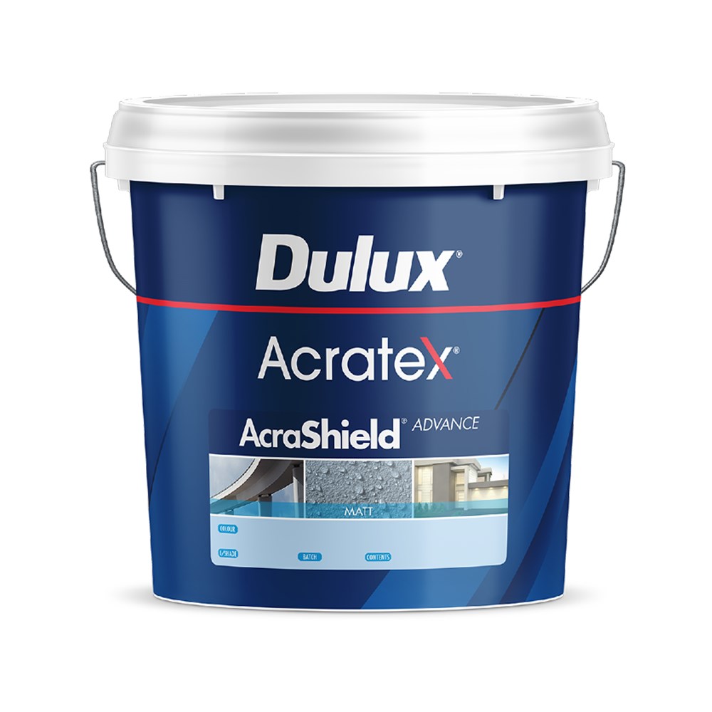 Dulux Acratex® AcraShield® Advance is a high build, elastomeric performance coating that forms a finishing barrier coat in the Acratex® Texture and anti-carbonation systems. Delivering a paint-like appearance, its film builds are twice that of standard decorative paint providing enhanced crack bridging performance. Applied by conventional nap roller or airless spray. Available in matt, low gloss and gloss finishes.