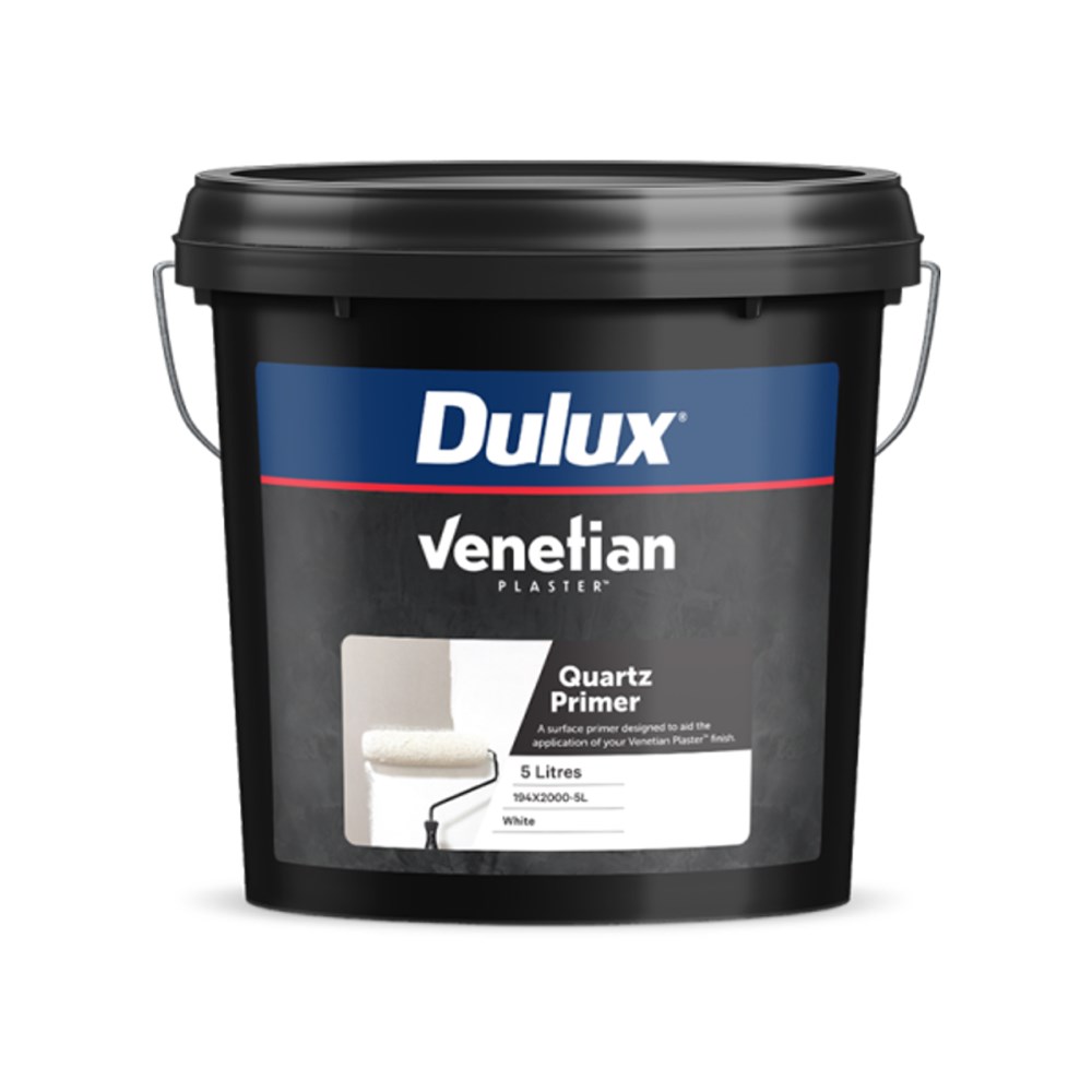 Dulux® Venetian® Plaster Quartz Primer is a primer-sealer for interior use on a plasterboard and porous masonry substrates under the Venetian® Plaster range. Apply with a conventional nap roller to fill masonry pores and minor imperfections to provide a sealed anti-slip and lightly textured surface that greatly assists the application of subsequent Venetian® Plaster feature finishes.