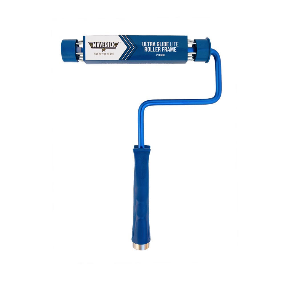 Maverick Ultra Glide Lite Roller Frame is the lightest professional roller frame on the market – 25% lighter than the Maverick Ultra Glide Roller Frame. Made from hardened 10mm electric blue, powder coated, aluminium rod for superior strength and a strong 6 wire cage frame system to better secure the roller cover. It also has an easy glide, double bearing system to make rolling smooth and easy and a comfortable soft touch grip handle and lightweight frame to reduce rolling fatigue. Universal threaded to fit all Maverick Extension Poles.