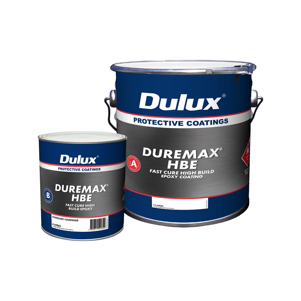 DUREMAX® HBE is a high-solids, two component high gloss epoxy with high build characteristics allowing single coat application up to 500 microns dry film thickness direct to suitably prepared mild steel.