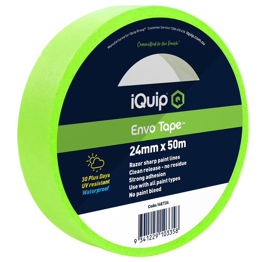 The iQuip Envo Tape is a ultra thin, clean release tape that provides ultra sharp thin paint lines. With a 30+ Days UV Resistance it can be used for both inside and outdoor painting projects with no paint bleed and strong adhesion.