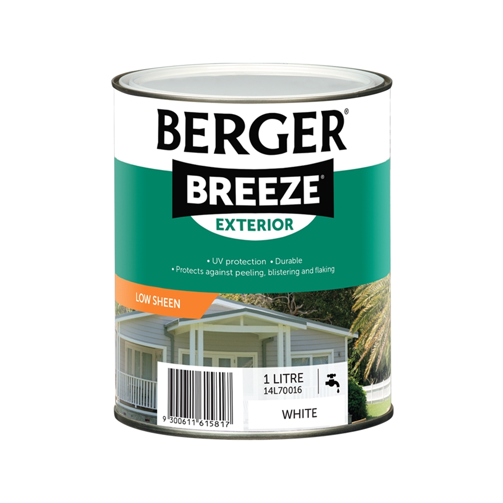 Berger Breeze Exterior protects against peeling, blistering and flaking. It is self-priming on most surfaces, and can also be used for interior application. Berger Breeze Exterior is flexible and durable for exterior use.