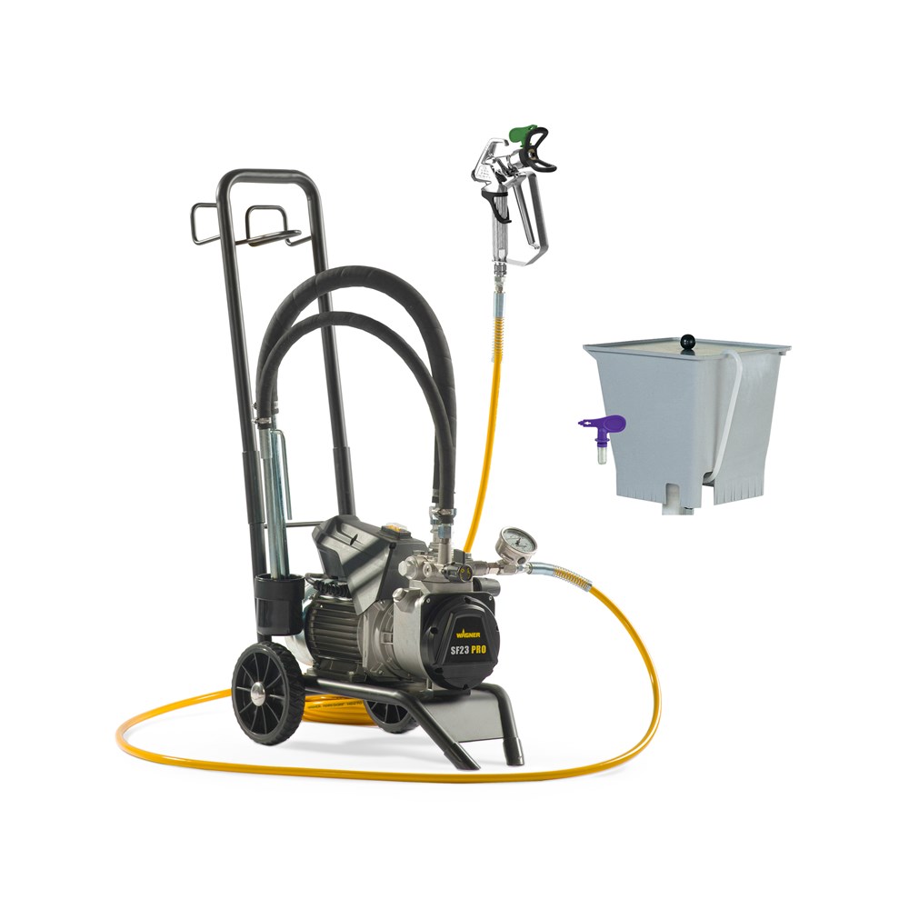 20L Hopper, Vector Pro Airless Gun, 517 HEA Pro Tip, 310 Fine Finish Tip, Tool Kit. |