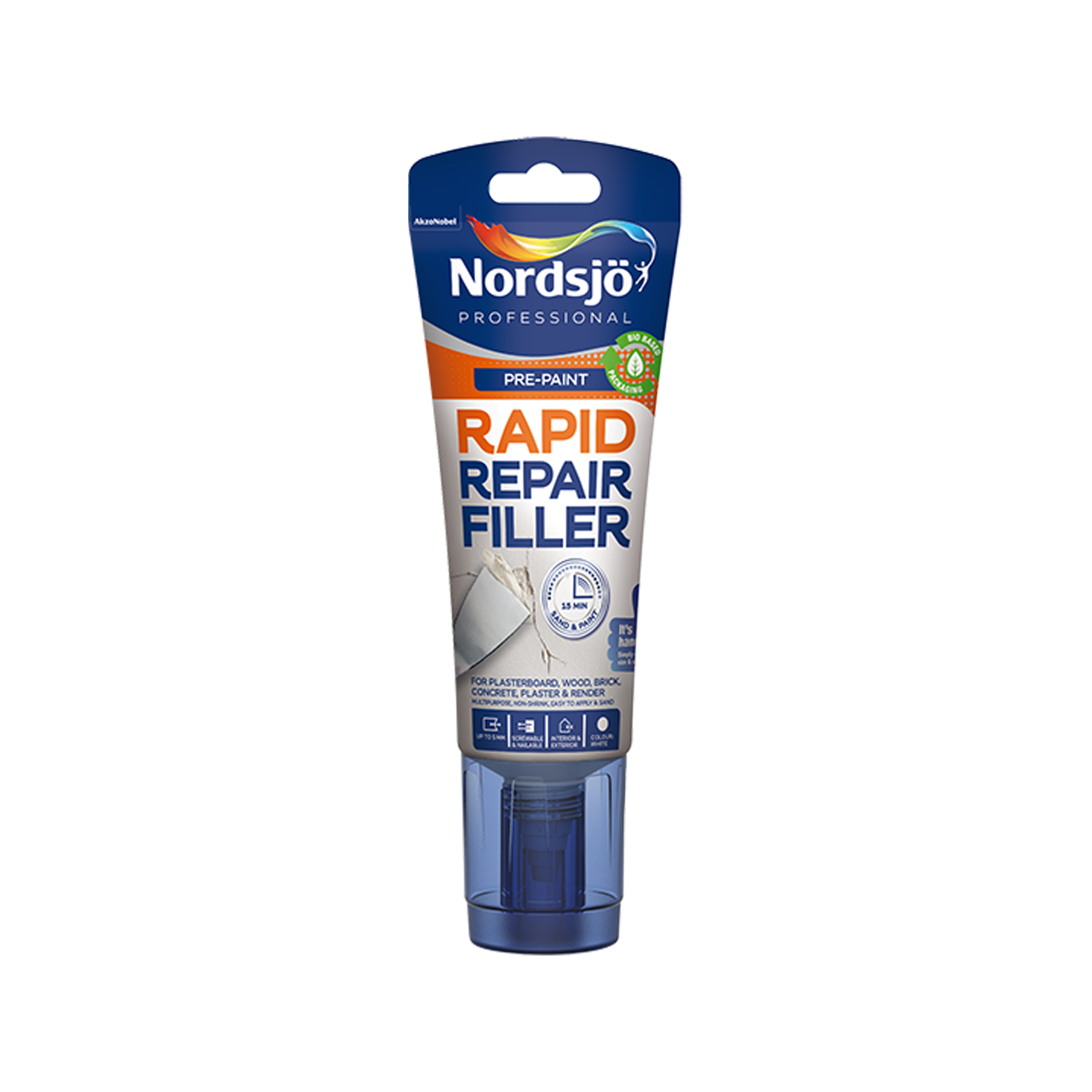 Nordsjö Professional Rapid Repair Filler quickly fills small cracks and holes, such as drill and nail holes. It adheres perfectly to stone, concrete, drywall, plaster and stucco. Sand and Paint in 15 minutes.