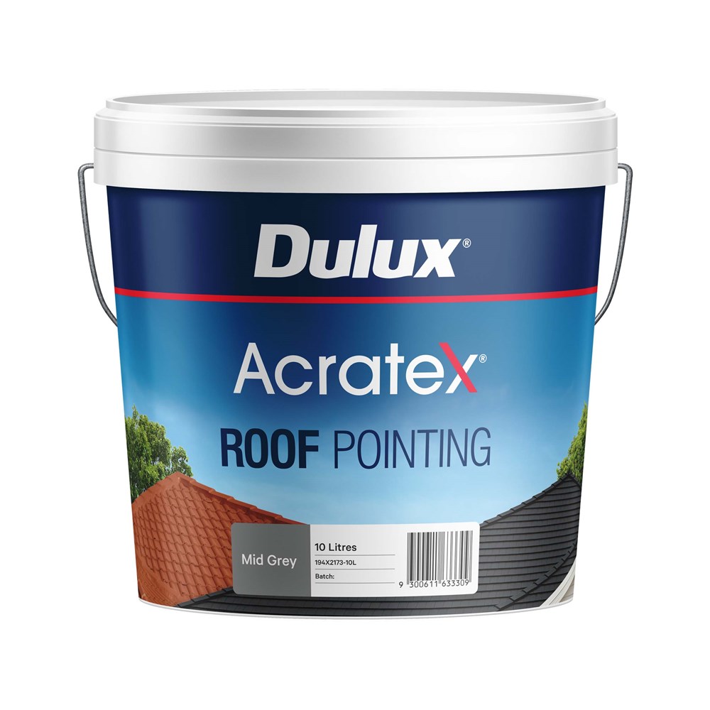 Dulux Acratex® Roof Pointing is a high build, pigmented, water based, acrylic pointing available in 19 colours. It is designed to be applied to suitably prepared concrete Roof Ridge Tiles in need of restoration. Available in Trade Outlets only, applying this product may require professional painter assistance. Check your local stockist for details.