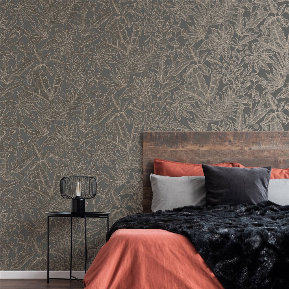 A beautiful design, made to whisk you away to a Paradise Island, featuring bold tropical leaves and soft elegant metallics, this wallpaper is the perfect addition to create a space of luxury and wonder.