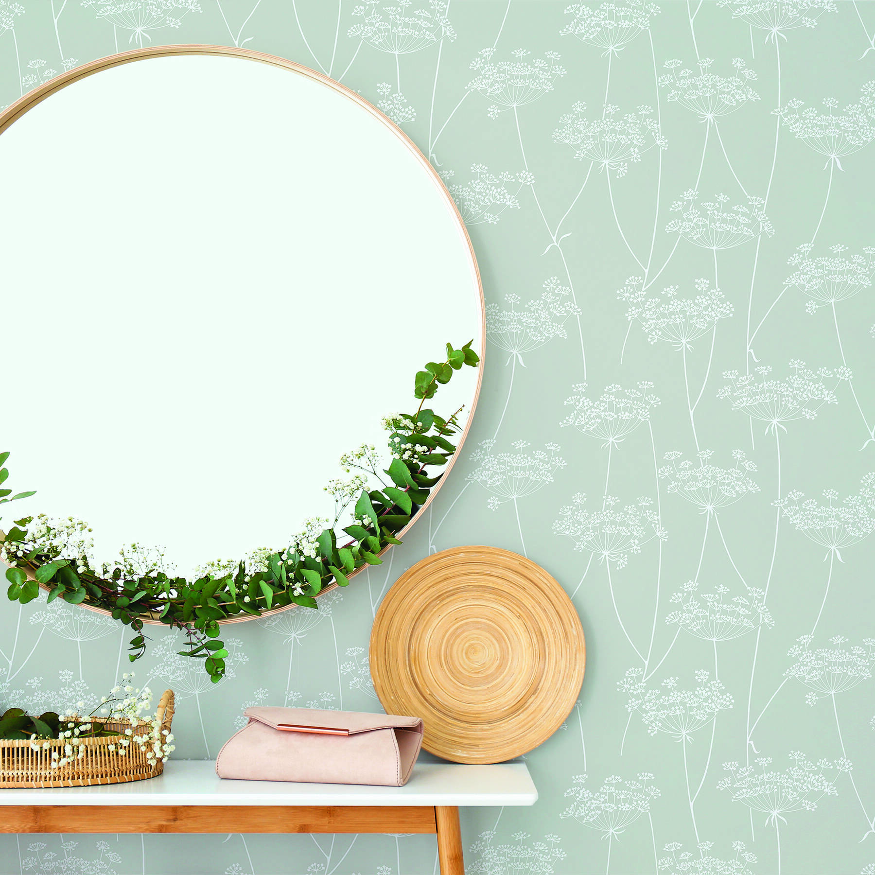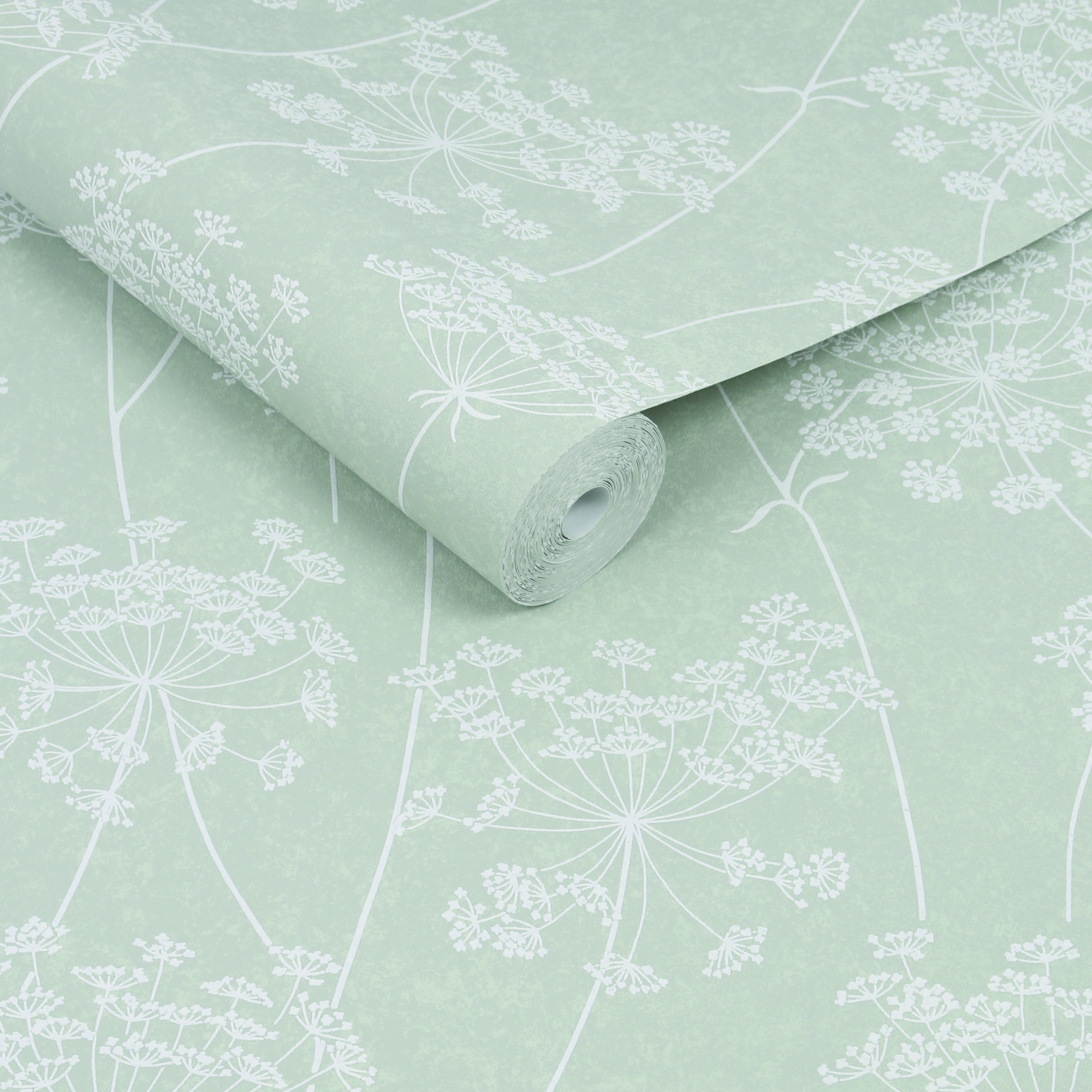 Aura Sage is flawlessly Simple, this delicate sprig motif design stretches over a textured neutral base for the ultimate in easy living wallpaper.