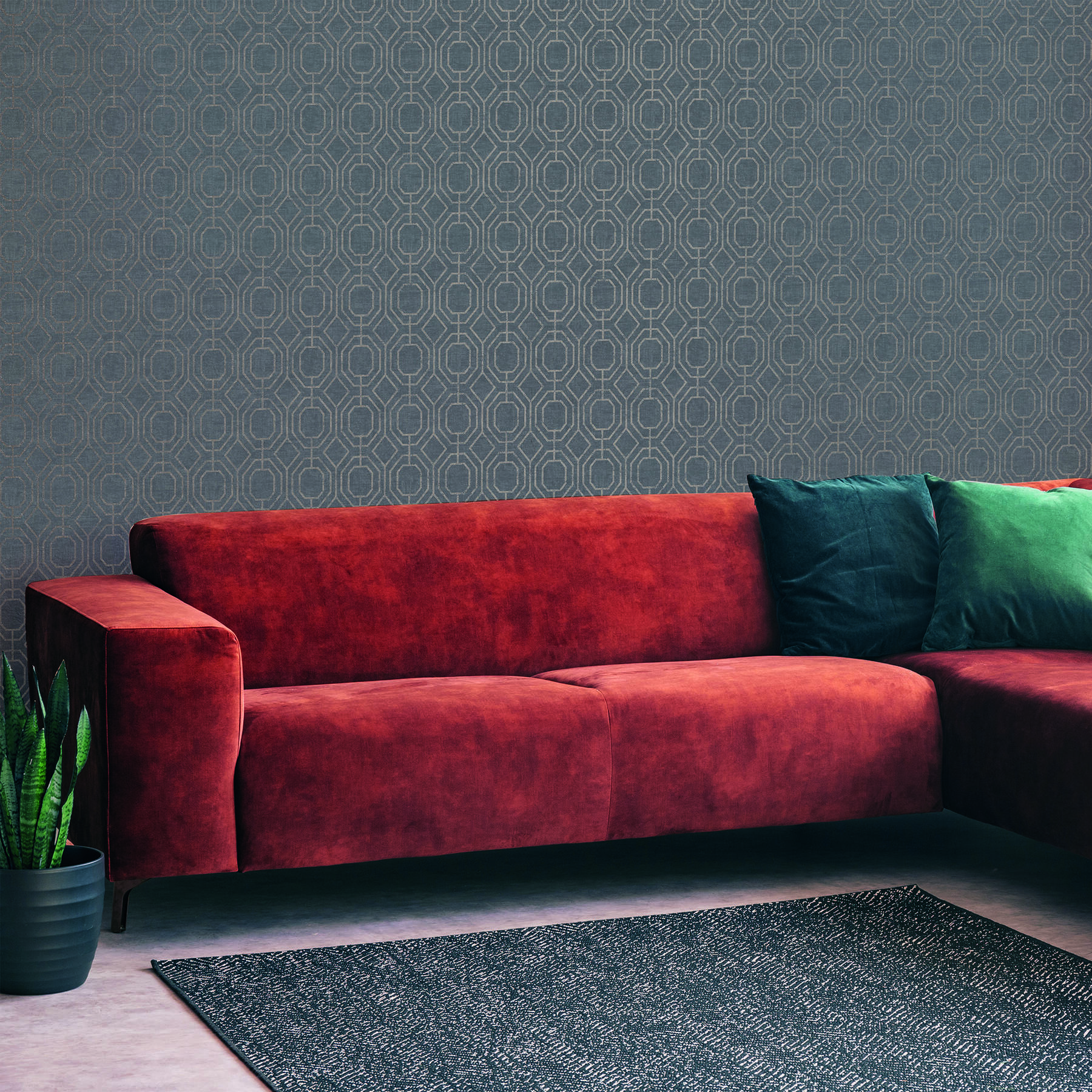 The gorgeous geometric design of the Luxe Geo Charcoal is set upon a textured base for a luxurious look, with the metalic geometric detail to give it that extra sophistication.