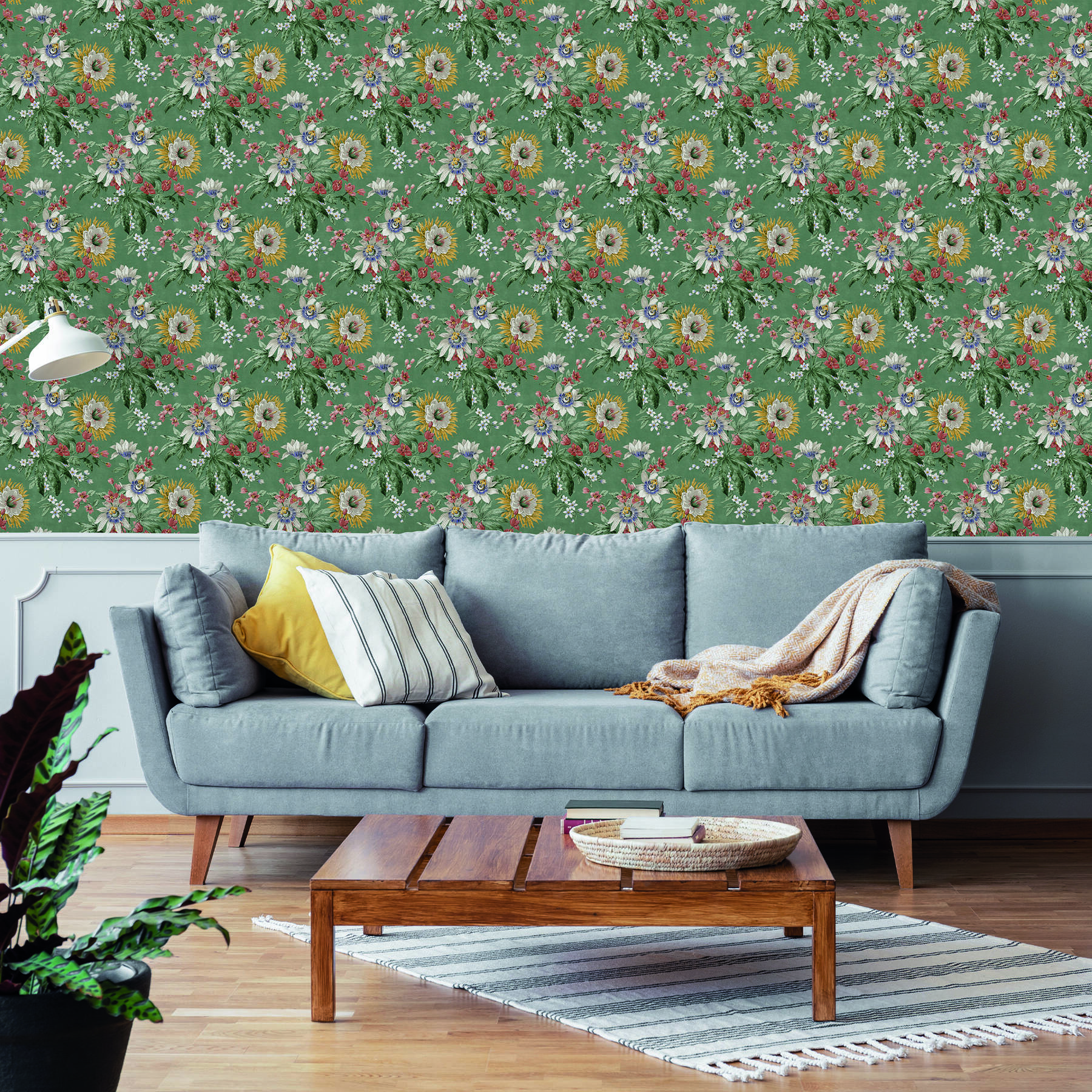This delicate wallpaper is a great addition to any room with a soft floral print to compliment any décor. The pops of orange within this wallpaper create a lovely contrast that can be tied in with complimenting cushions or trimmings.