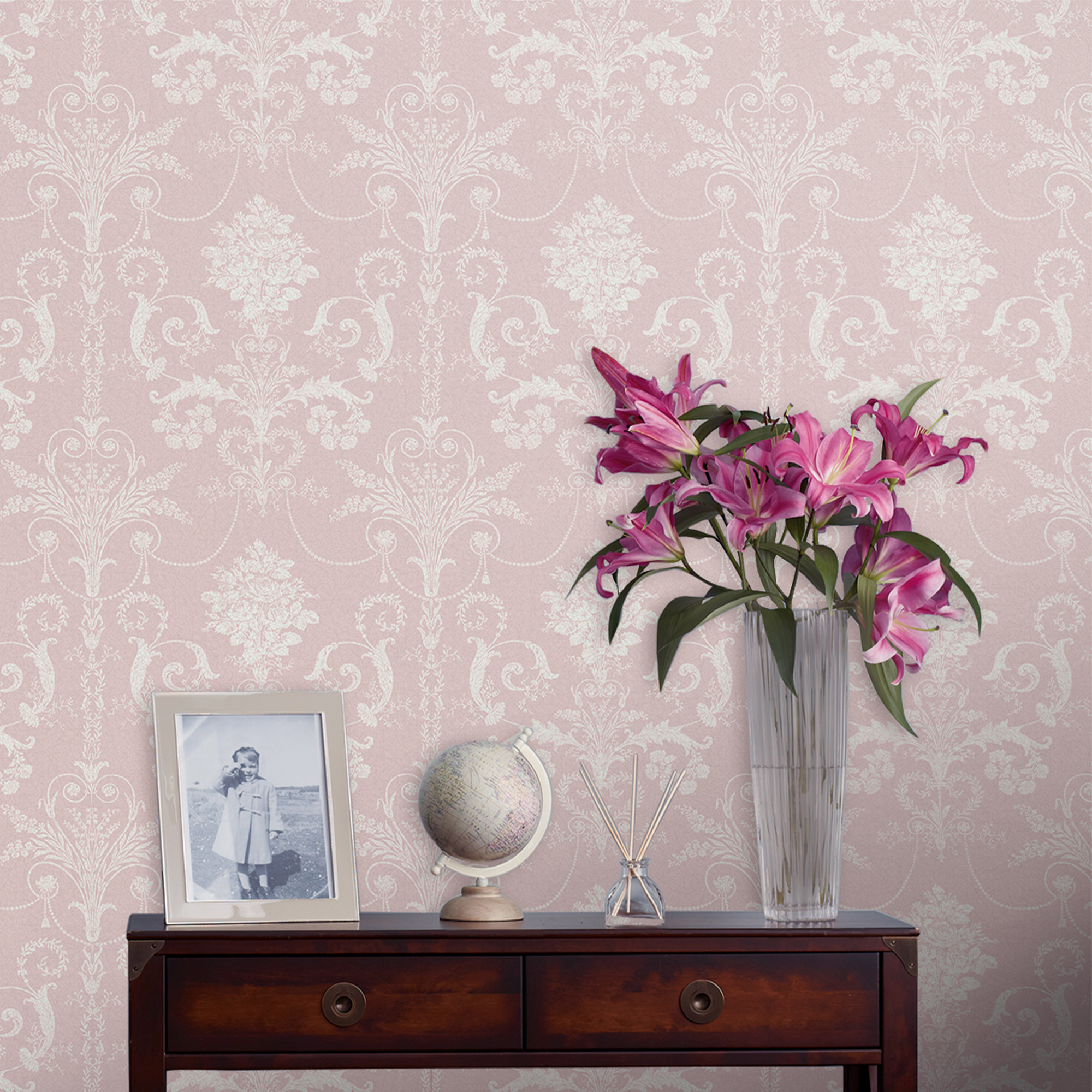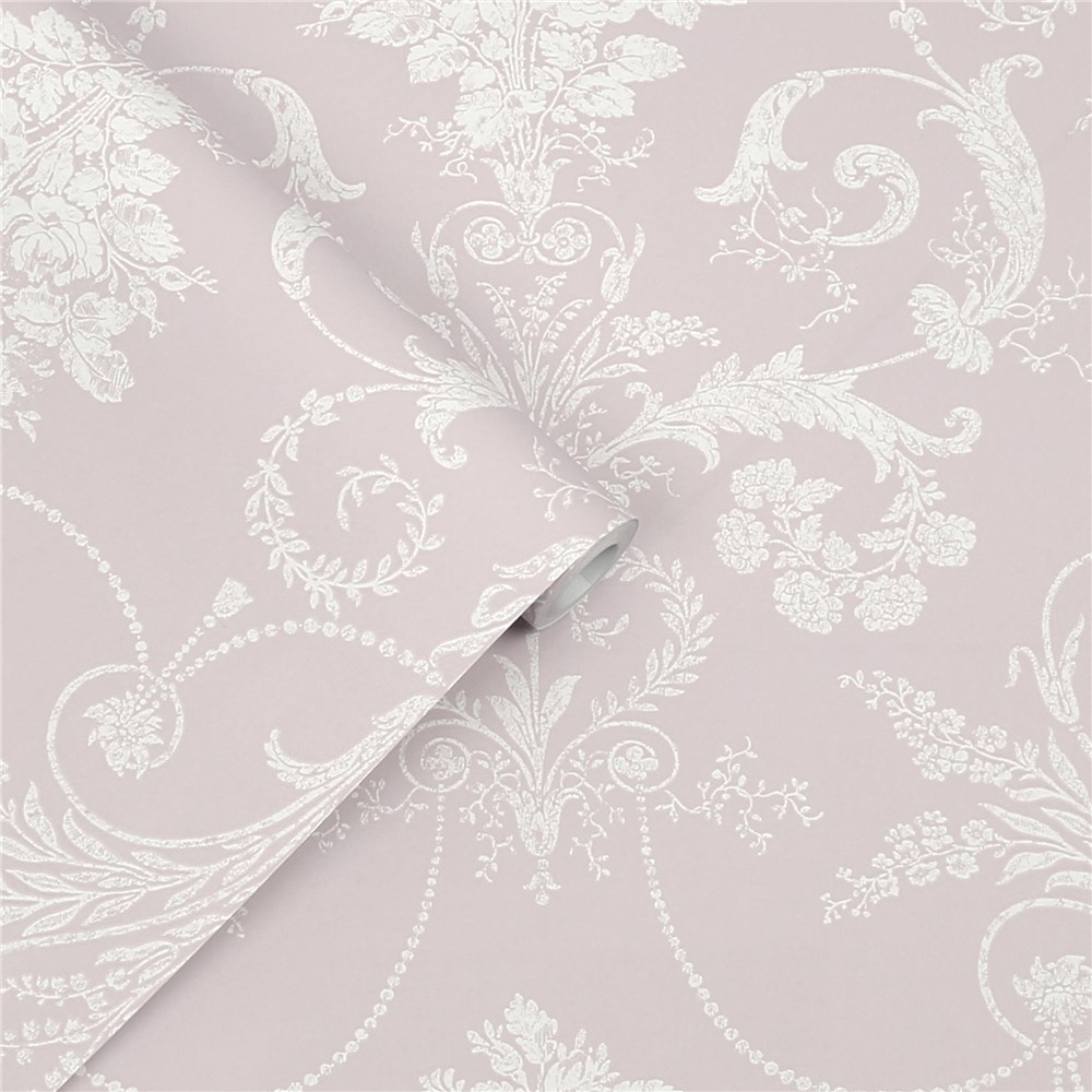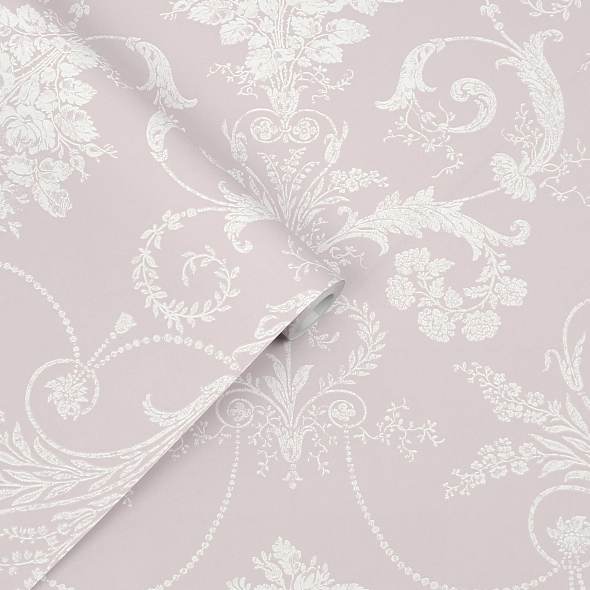 This chic French toile-inspired damask design looks fresh and modern with a matt finish and amethyst coloured background.