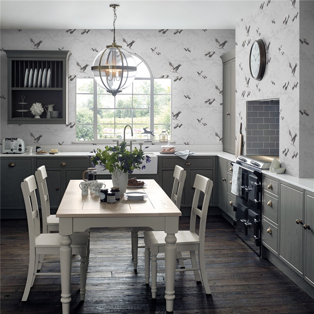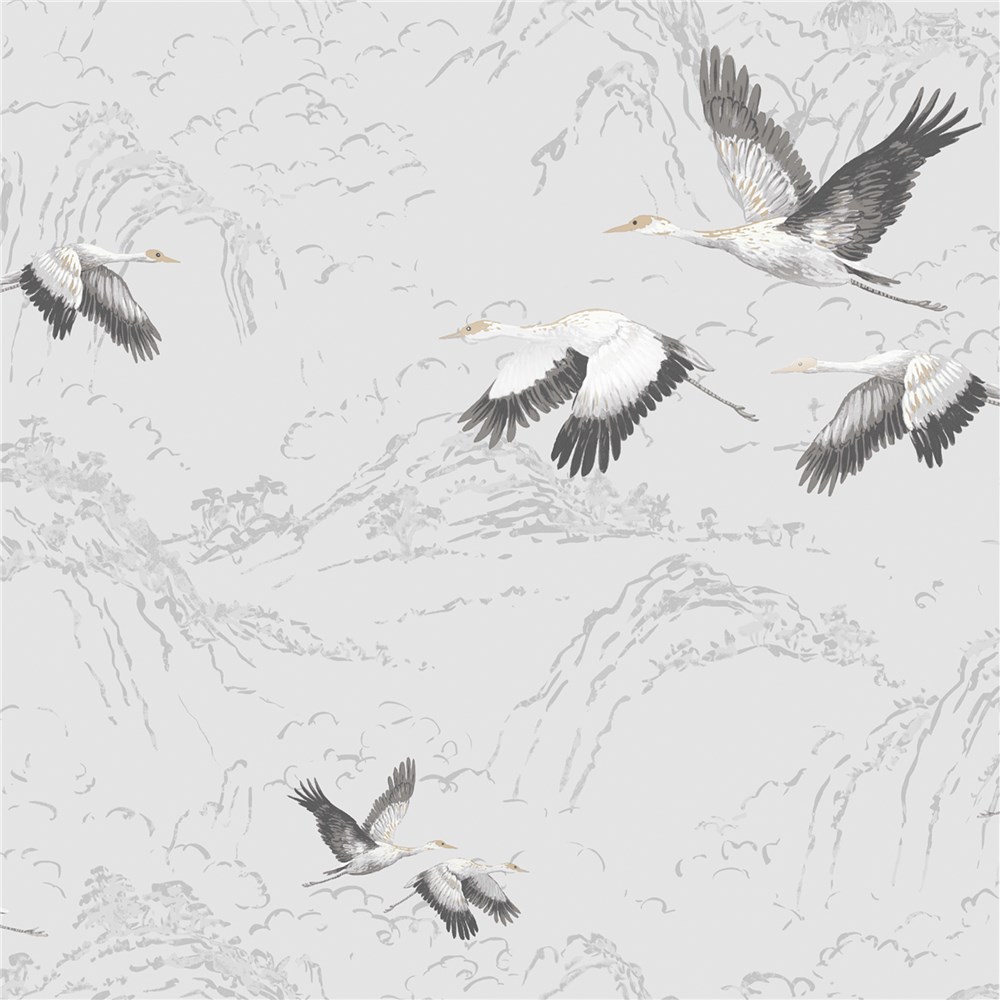 Animalia is a graceful design featuring cranes in flight to add a contemporary yet classic feel to your home.