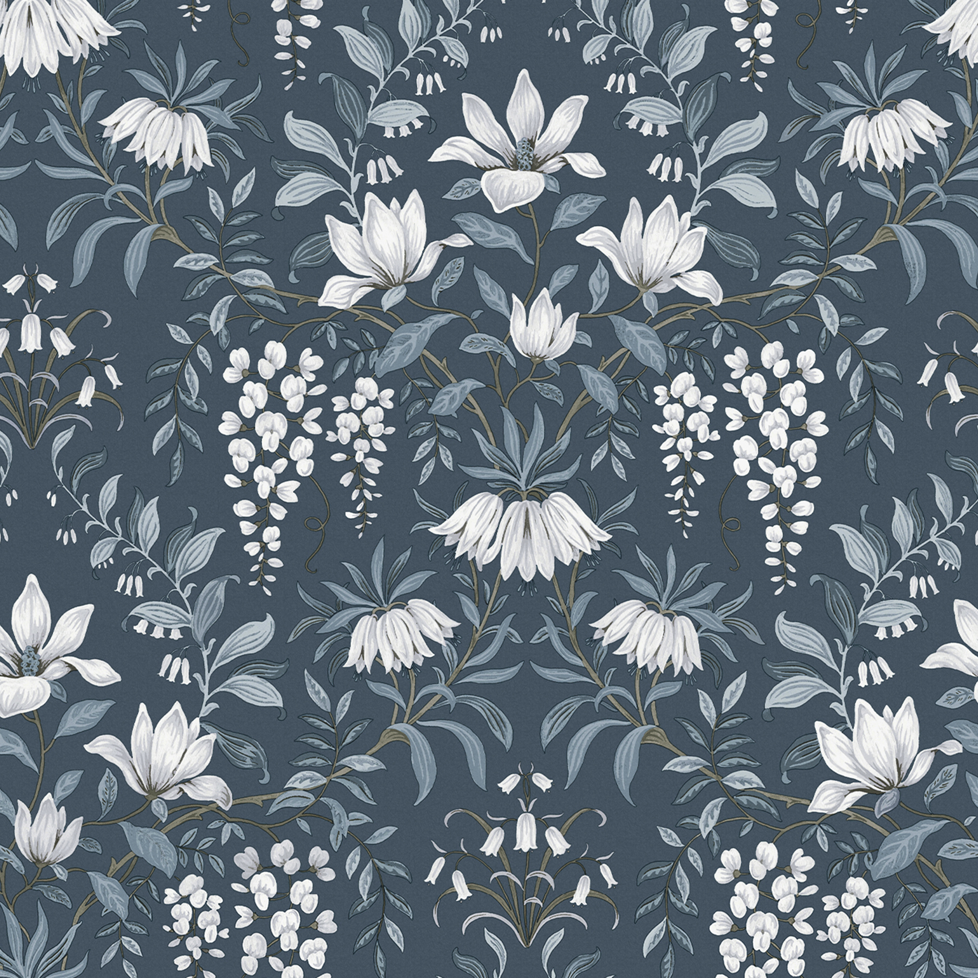A beautiful and sophisticated floral featuring painted white flowers and swirling patterns of leaves. In dark seaspray tones Parterre brings a modern feel to a vintage style pattern.