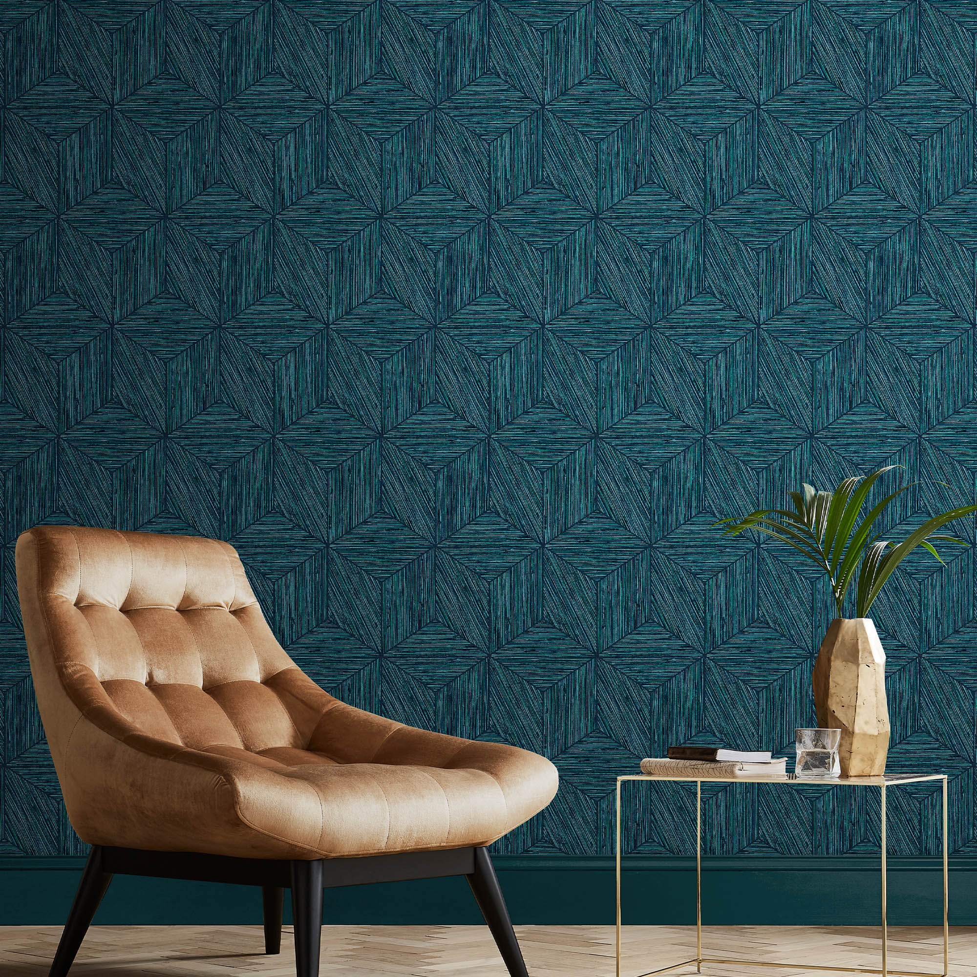 Grasscloth Geo Teal allows you to embrace a subtle, modern geo style without going in head first. Use this unique textured wallpaper with an extra large repeat to create dimension and space within your home.