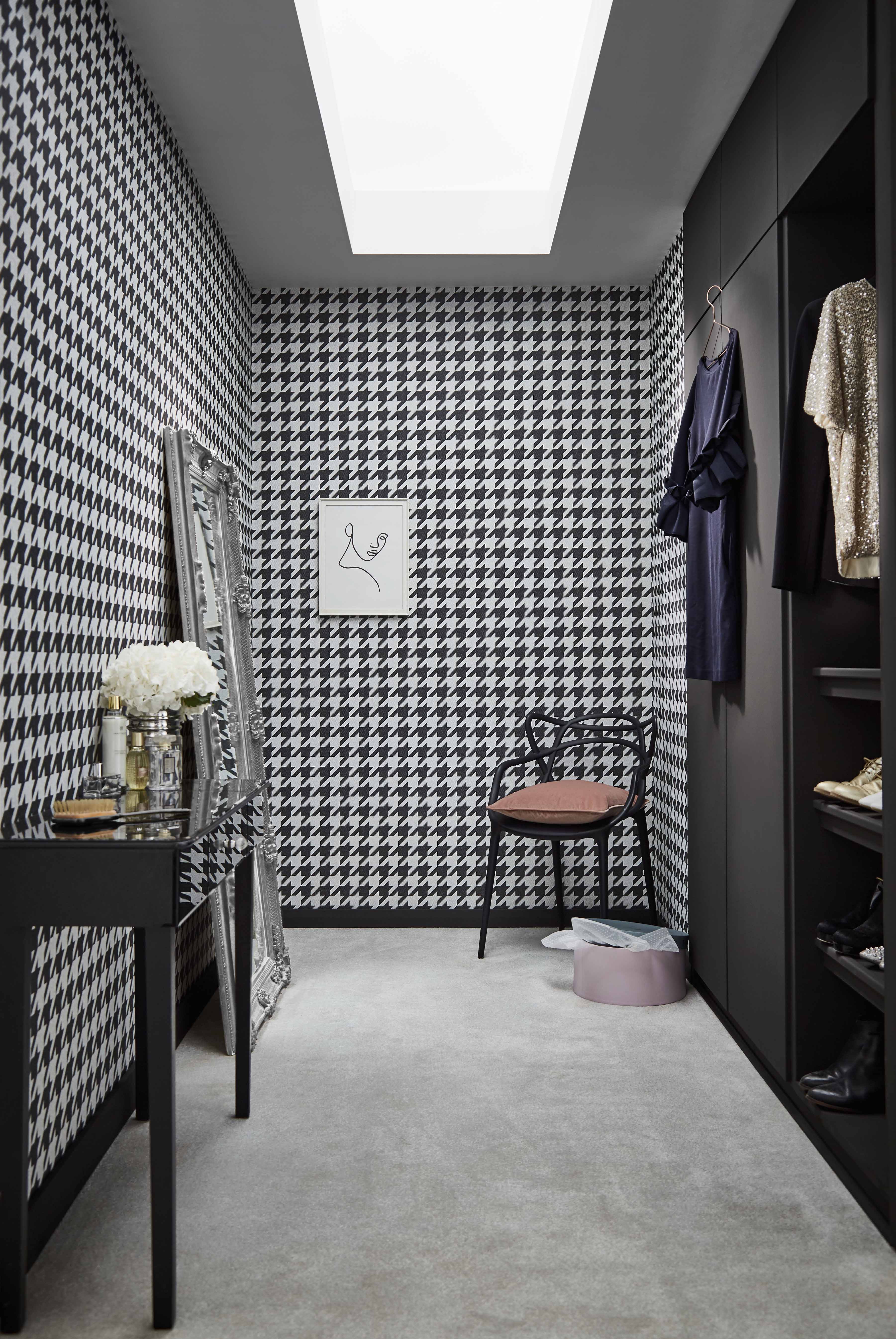 This monochrome dogtooth design is the epitome of style. Make a statement with this timeless classic on all 4 walls or for a softer impact, why not use the coordinating Christian semi plains for a full room solution. For extra drama, pair this wallpaper with dark grey paint or freshen it up with a clean white.
