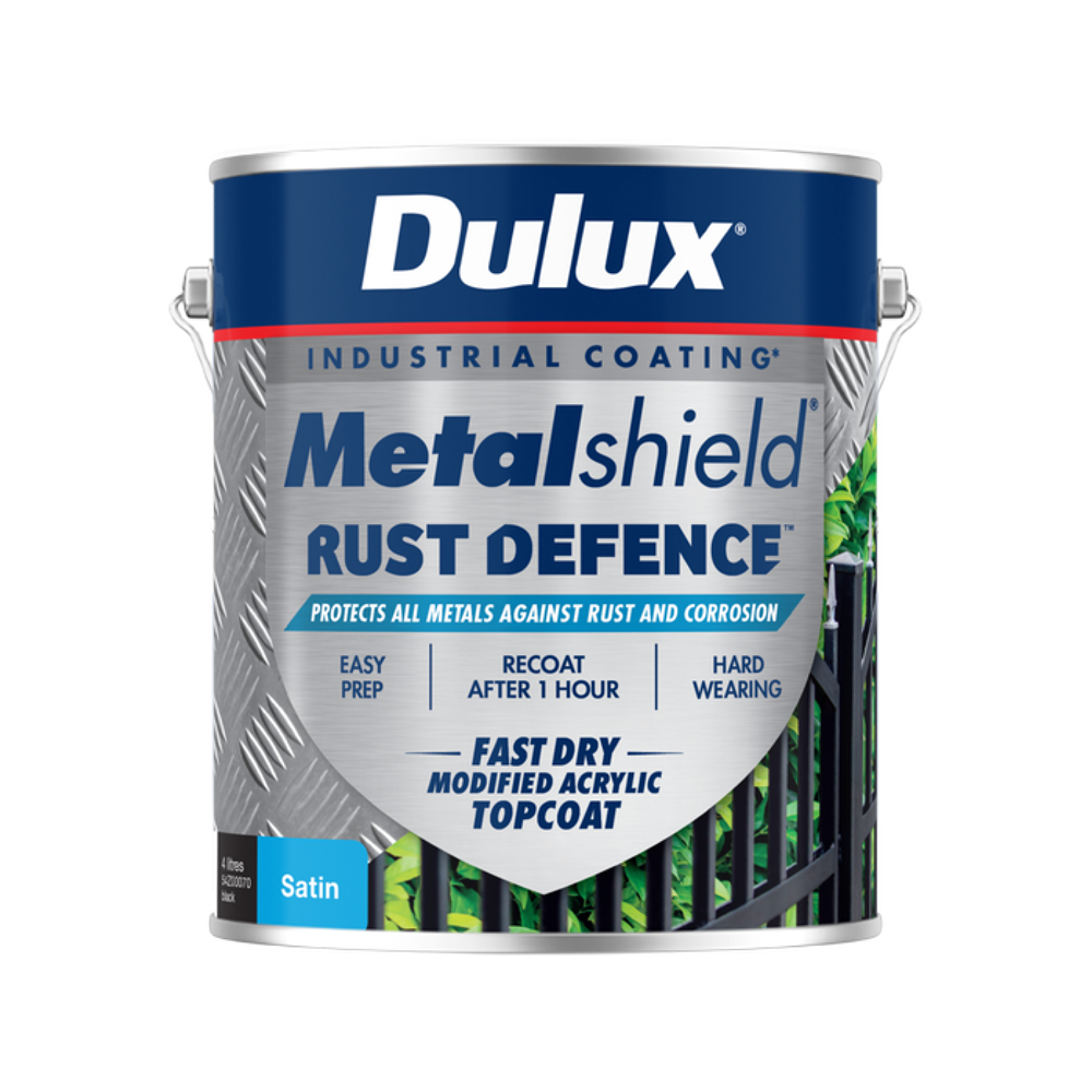 Dulux Metalshield® Rust Defence™ is a high performance topcoat deisgned for the protection of ALL suitably prepared metal surfaces. This fast drying technology is ideal for projects that require easy application and quick turnaround.