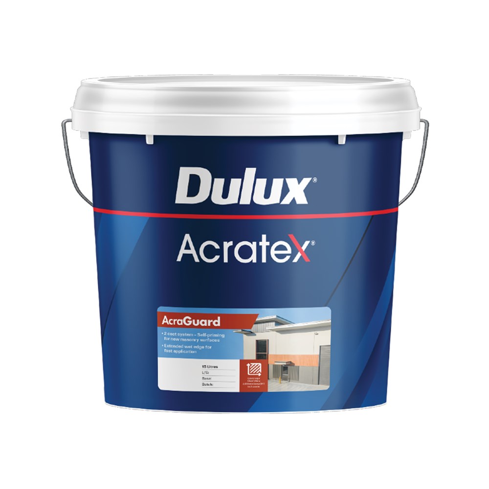 Dulux Acratex AcraGuard is a pigmented, water based 100% acrylic coating that is designed as a self priming top coat to overcoat masonry substrates like Fibre Cement Sheet, Off Form, tilt-up & Pre-cast Concrete. It is simple to apply, has extended wet edge, dries to a Matt Finish to reduce the appearance of lap marks and picture framing.