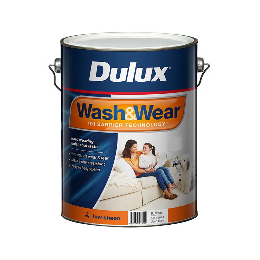 Dulux Wash&Wear 101 Barrier Technology creates a hard wearing acrylic finish that allows you to wipe away most common marks, scuffs and stains with a wet cloth. With Wash&Wear your walls will look freshly painted for years.