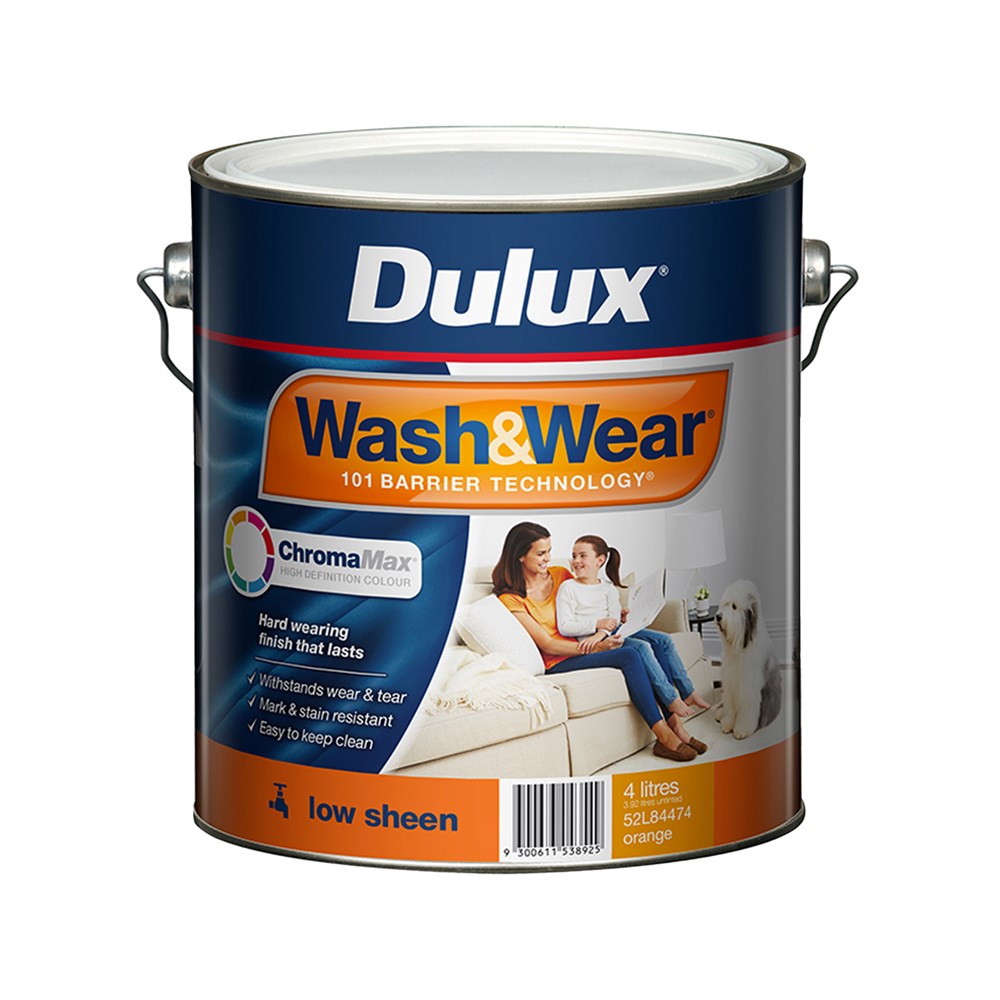 Dulux Wash&Wear 101 Barrier Technology creates a hard wearing acrylic finish that allows you to wipe away most common marks, scuffs and stains with a wet cloth. With Wash&Wear your walls will look freshly painted for years.