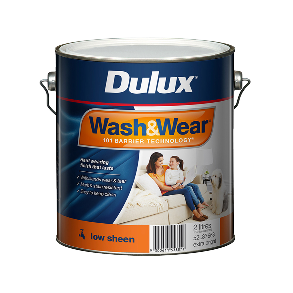 Dulux Wash&Wear 101 Barrier Technology creates a hard wearing acrylic finish that allows you to wipe away most common marks, scuffs and stains with a wet cloth. With Wash&Wear your walls will look freshly painted for years.
