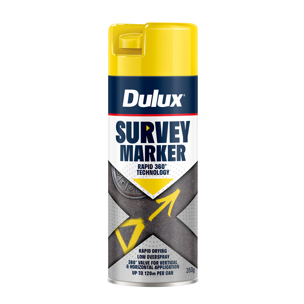 Dulux Survey Marker delivers highly visible, clean sharp  markings and superior mileage of up to 120m per can. Dulux Survey Marker is designed specifically for spot marking, symbol and writing applications as required in construction, road works, civil work and surveying.