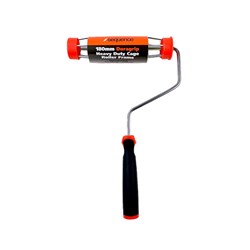 A roller frame holds the paint roller sleeve and attaches to an extension pole if needed. It provides a sturdy structure for smooth and consistent application of paint on walls, ceilings, or other flat surfaces.