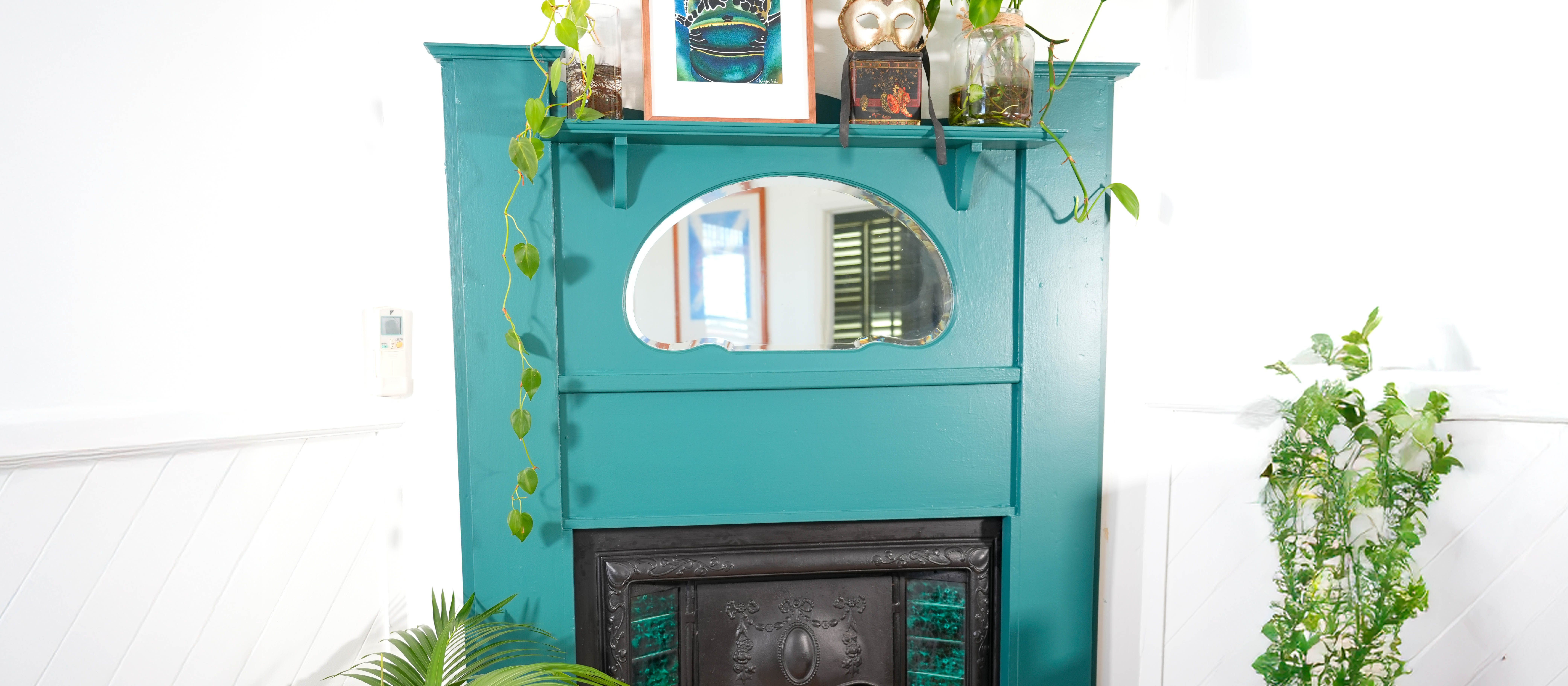 How do you transform your outdated fireplace into a stunning feature of your home? Paint it! And with the beautiful Porter’s Paints Aqua Satin range, adding elegance and sophistication to your home has never been easier. Follow along as we pull a dated metal fireplace into the 21st century with the power of paint.